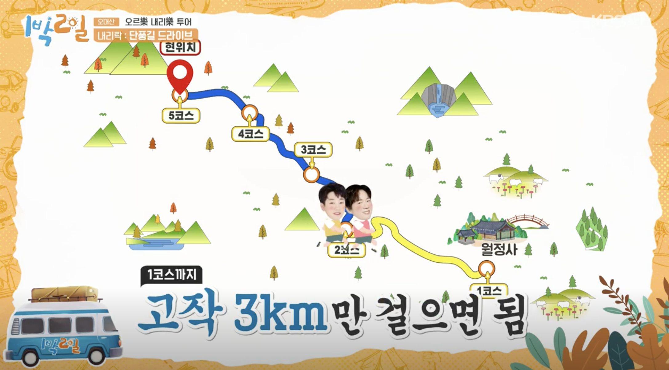 2022년 11월 6일에 방송된 KBS 에서는 강원도 평창의 오대산에서 각종 액티비티를 끝낸 후, 점심을 먹으러 간 모습이 방송되었습니다. 오대산 비로봉에 오른 출연자 김종민과 나인우, 게임에서 이